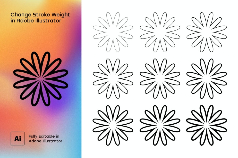 颜色可在 Adobe Illustrator 中自定义。 可以根据需要在 Photoshop 文件中编辑噪波效果(纹理作为单独的图层包含在内)。