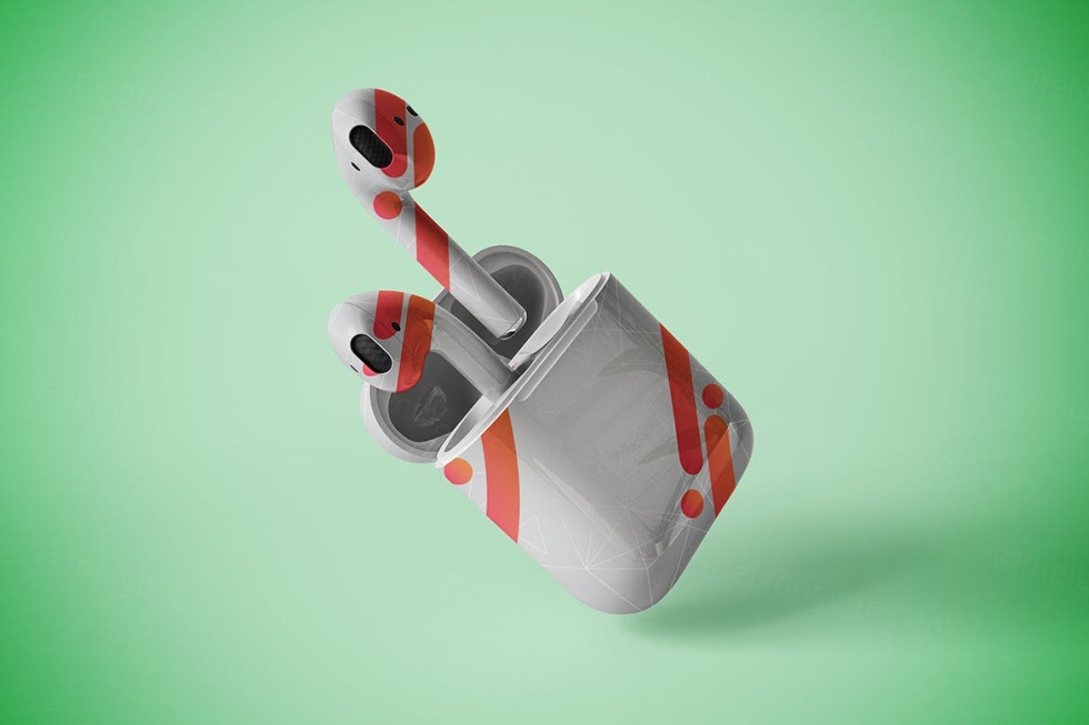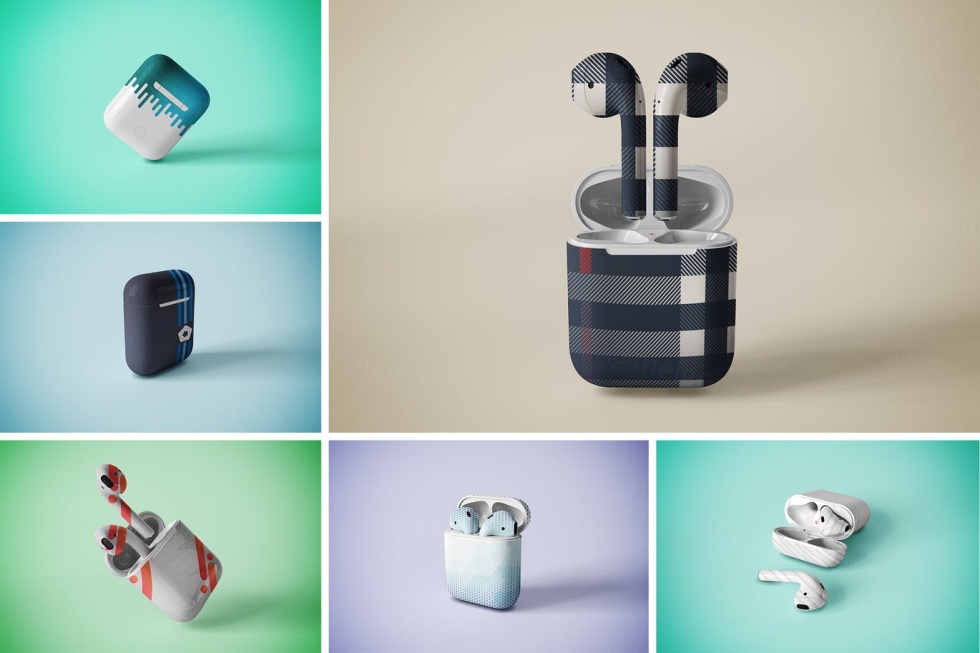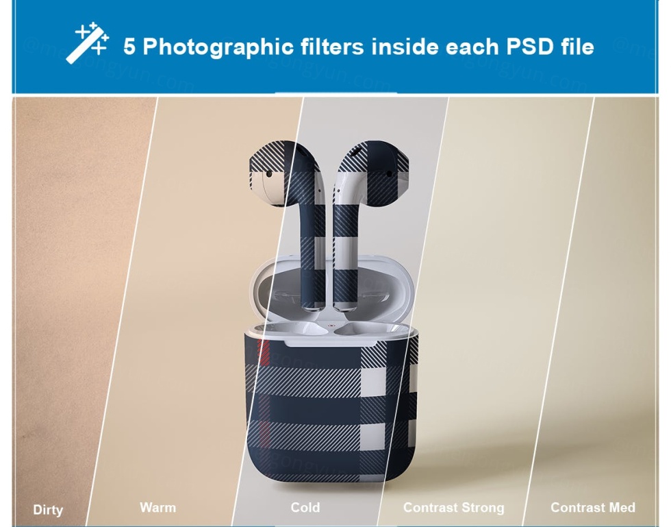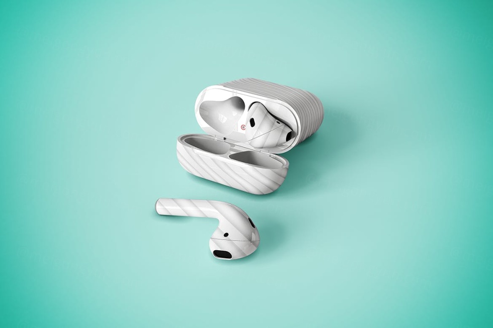 高品质的时尚高端逼真质感的Airpods样机VI展示模型mockups,可以呈现不同角度的响应式设备,可用于您的设计,适用于品牌,并由独立的图层集组成。包含帮助文件。 特色:6个PSD?高分辨率:4500×3000像素?易于使用智能对象?逼真的结果
