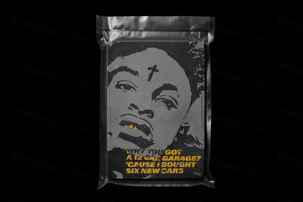 潮流透明金铝箔塑料压膜海报包装展示样机PS素材 Blkmarket – Foil Plastic Mockup