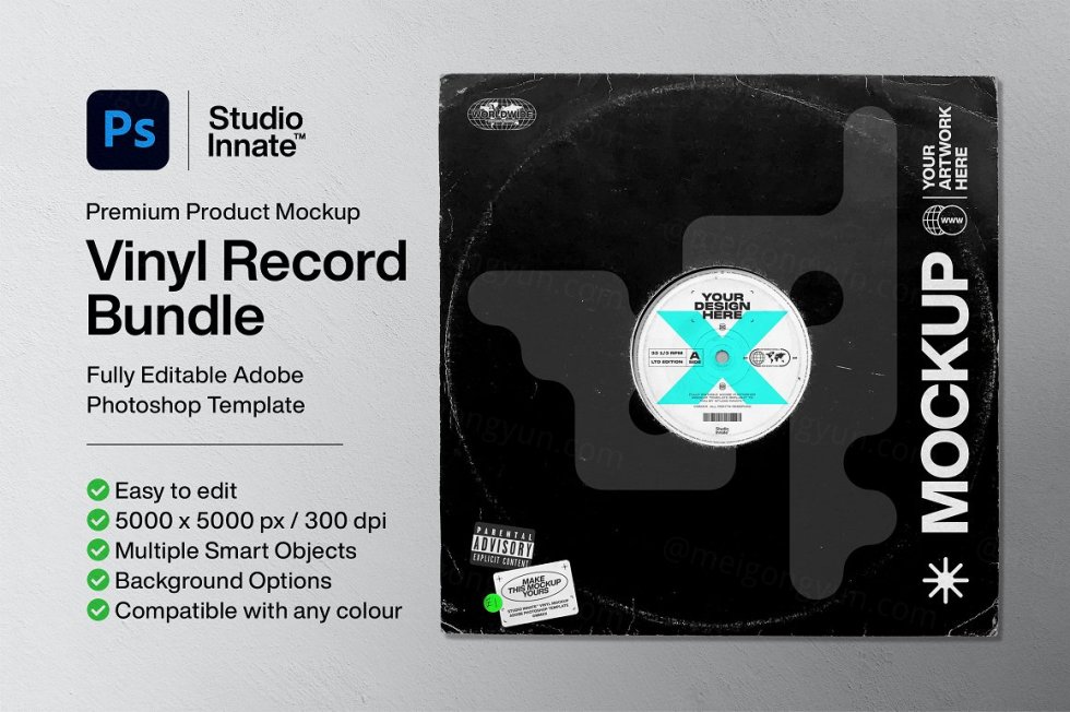 这个优质的黑胶唱片模型包包含多种选项,可通过 6 种不同的视图展示您的专辑插图。所有这些都在一个简单易用且组织良好的 .psd 文件中。通过更新图层面板中清晰标记为绿色的每个智能对象中的内容,轻松应用您的设计或徽标。智能对象已经设置为继承示例图像中显示的自然纹理和光照。您还可以使用颜色选择器和图层面板将背景和纹理更改为您喜欢的任何内容。