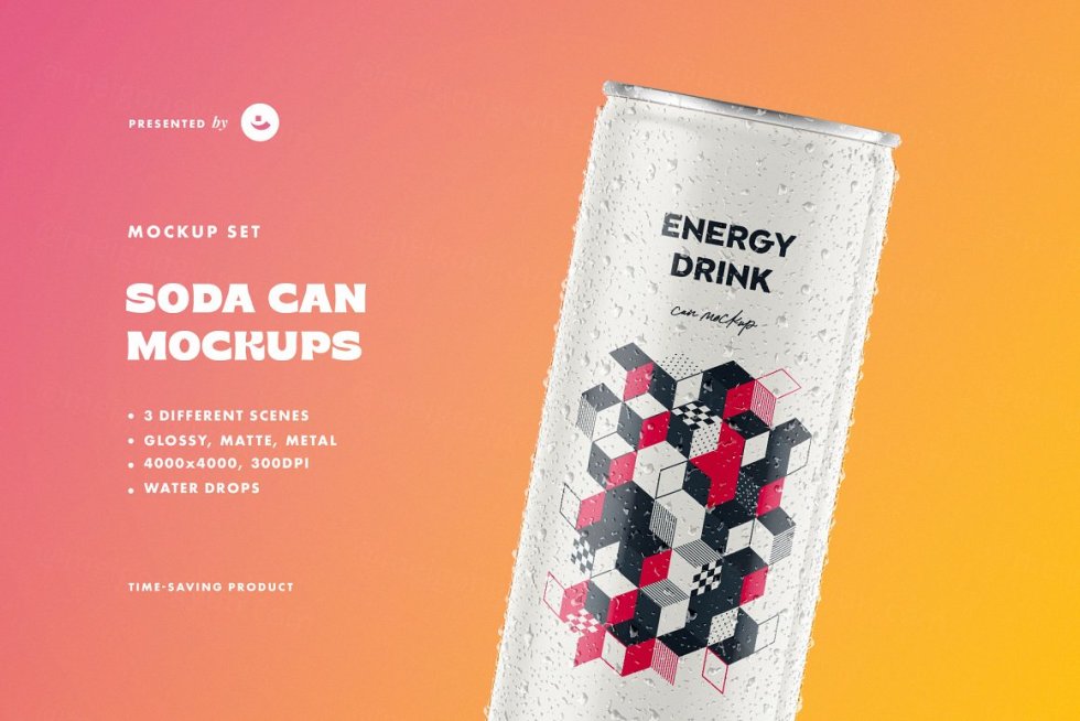 正确的印象始于正确表达想法的方式。不用担心您正在查看的模型,我们已经处理了所有外部和技术功能。从最好的方面介绍您的设计:浮动模型的3 个场景将注意力吸引到特定的罐头侧面。每个场景都提供了将表面更改为光泽、哑光或金属覆盖的选项。如果您需要在罐头中添加这种冰冷的外观,只需选择水滴选项即可。这里有一个小红利功能:带有两个罐子的场景的拉片可以有任何你想要匹配整个风格的颜色。