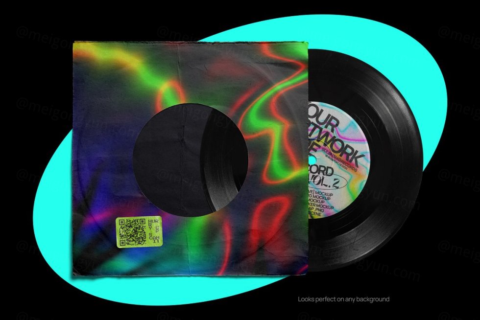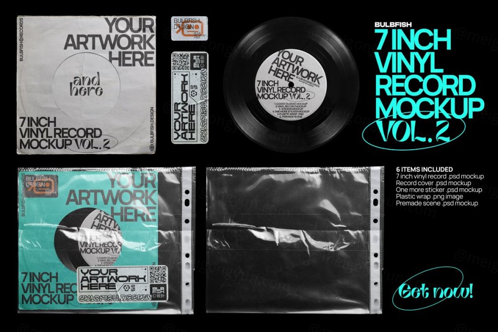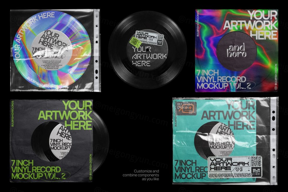包括黑胶唱片样机,封面样机,两个贴纸样机,保鲜膜透明 .png,预制场景样机