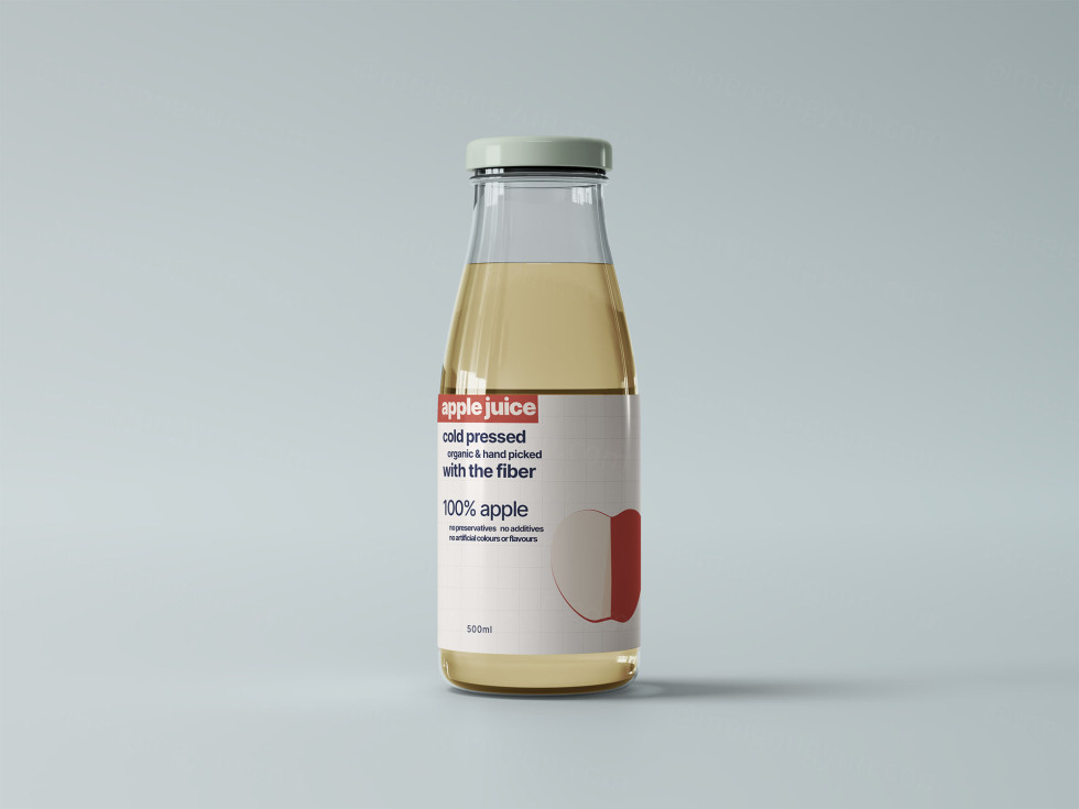 具有前视角的玻璃果汁瓶模型,用于经典展示您的果汁包装和标签设计。可以通过使用智能对象层来自定义 Photoshop 文件,并控制阴影、灯光和高光。果汁颜色、瓶盖颜色和背景都可以根据用户的需要轻松更改。