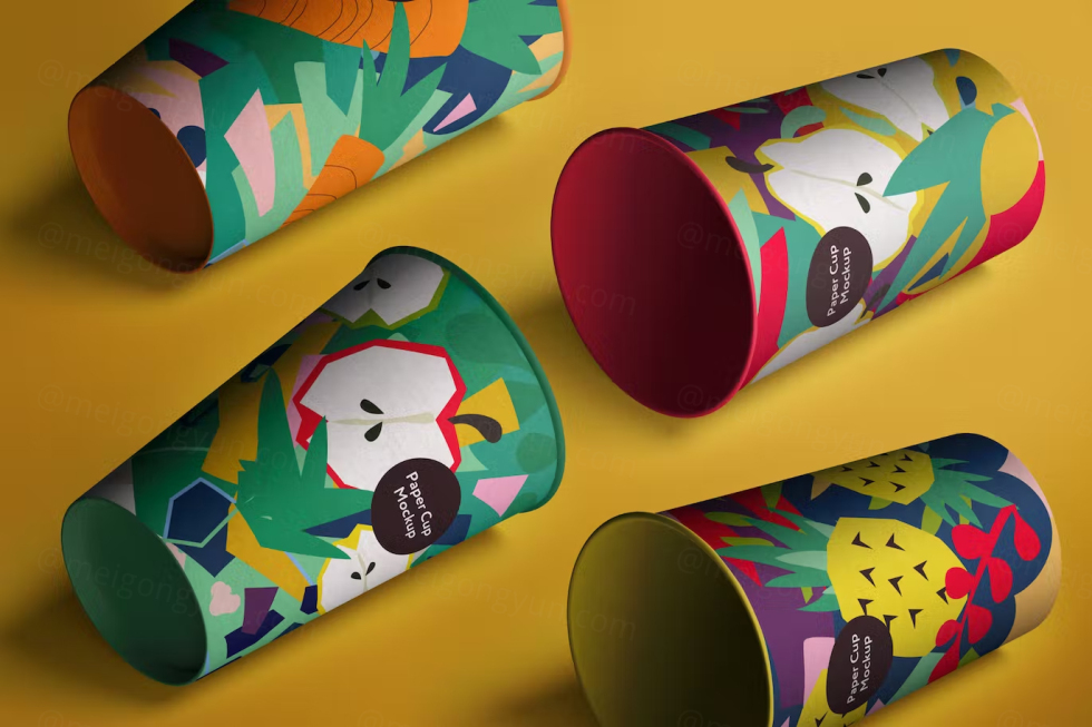 高质量纸杯饮料包装设计贴图展示样机模板 Isometric Paper Cup Mockup 3