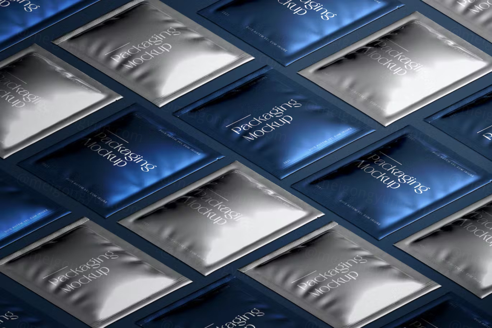 高质量铝箔袋塑封袋食品糖果包装贴图展示样机模板 Isometric Foil Packaging Mockup 1