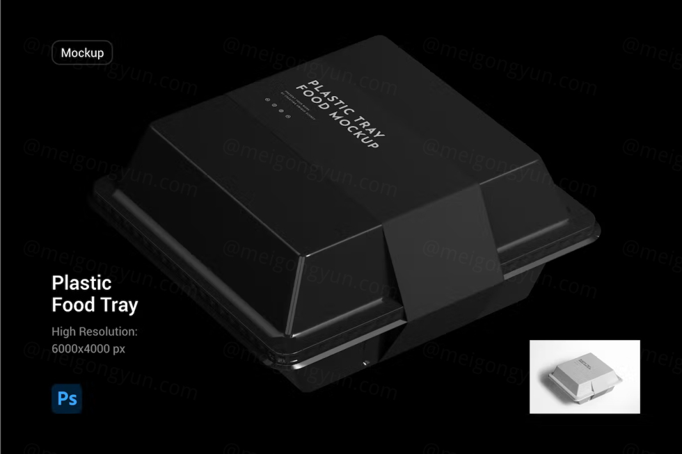 高质量外卖快餐盒食品包装设计展示贴图样机PSD模板 Plastic Food Tray Mockup