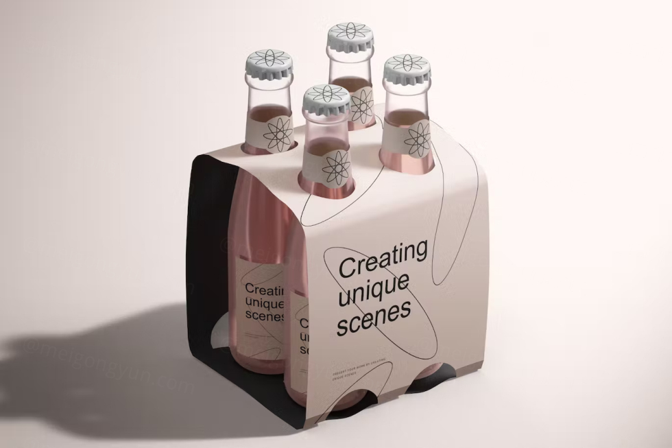 高质量啤酒瓶架外卖品牌包装设计展示样机模板 Glass Bottle Holder with Beer Mockup