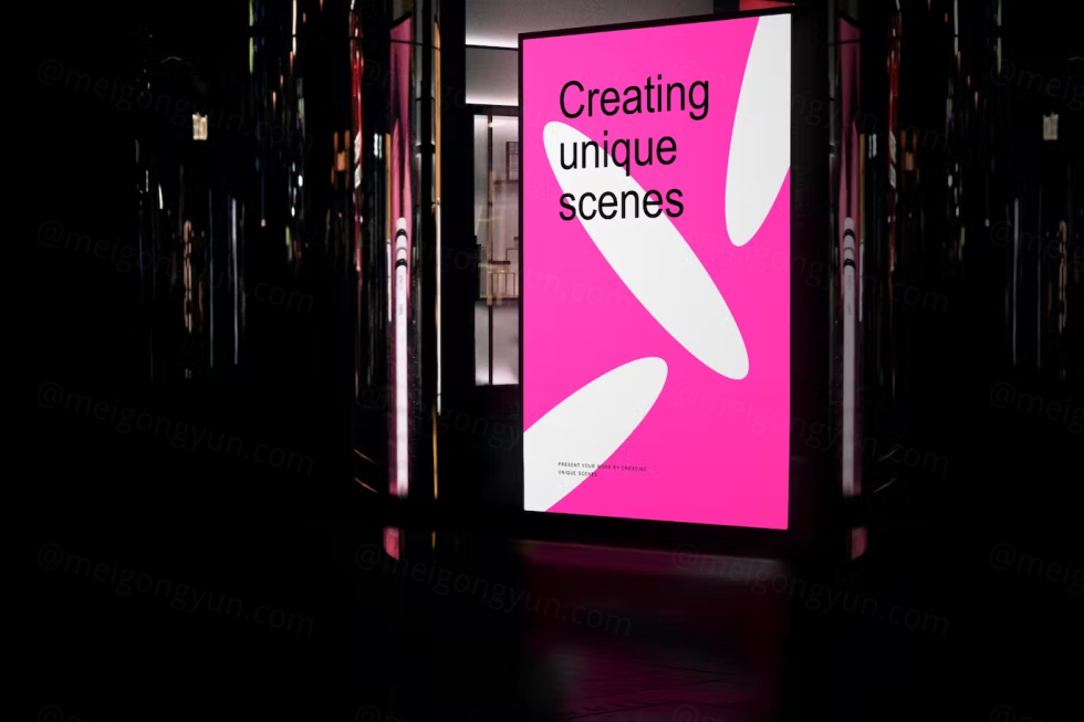 夜店酒吧KTV灯箱广告牌宣传海报广告设计贴图展示样机模板 Lightbox Poster Mockup