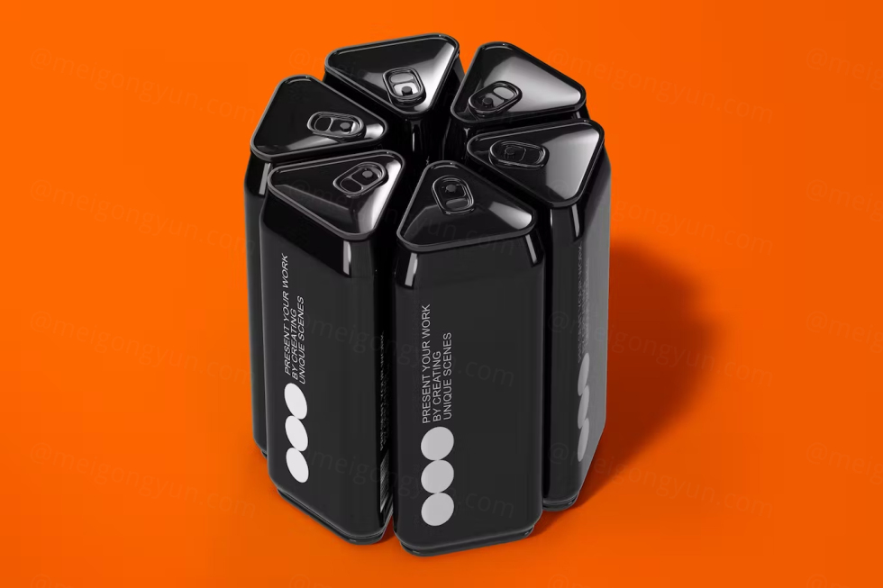 三角异形可乐啤酒饮料易拉罐包装品牌设计提案展示样机模板 Triangular Can Mockup v2