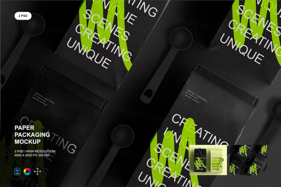 高质量纸袋食品包装设计贴图展示样机PSD模板 Paper Packaging Mockup 4