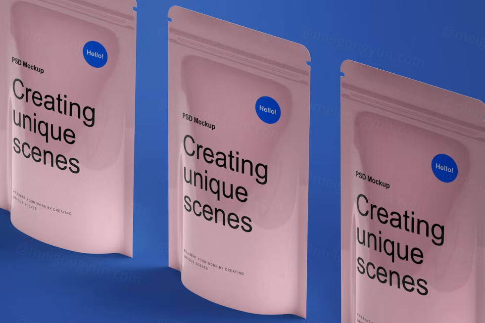 高质量拉链袋自封袋食品包装设计贴图展示样机PSD模板 Pouch Packaging Mockup 2