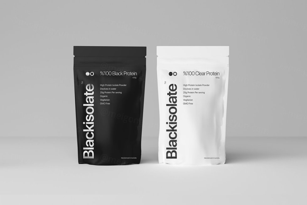 高分辨率黑白运动补充剂品牌样机包。
