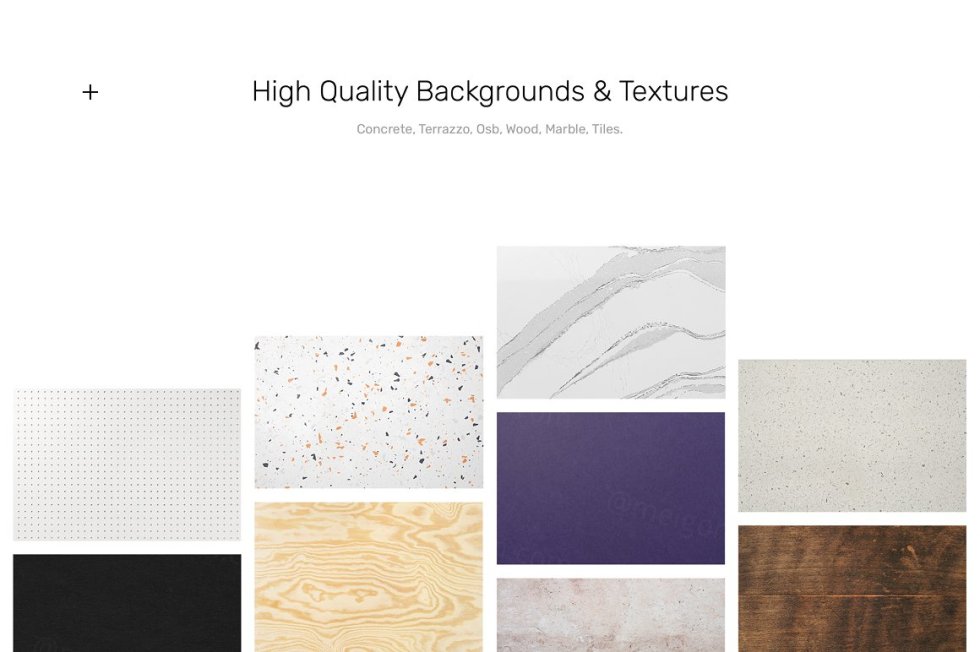 高质量纹理:混凝土、水磨石、定向刨花板、木材、大理石、瓷砖。