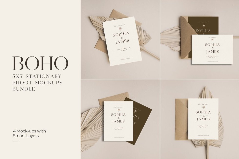 Boho Minimalist 卡片样机非常适合用于婚礼请柬、贺卡、感谢卡等等,这些样机基于高分辨率照片,并且易于与智能图层一起使用。 产品特点 4 个带有智能图层的 .psd 文件,包括 JPG 文件 卡片尺寸(5" x 7" 英寸) 图片尺寸 6240x4160px 高分辨率照片 文档指南 需要 Adobe Photoshop CS4 或更高版本。 请注意模型中使用的设计不包含在产品中。仅供预览
