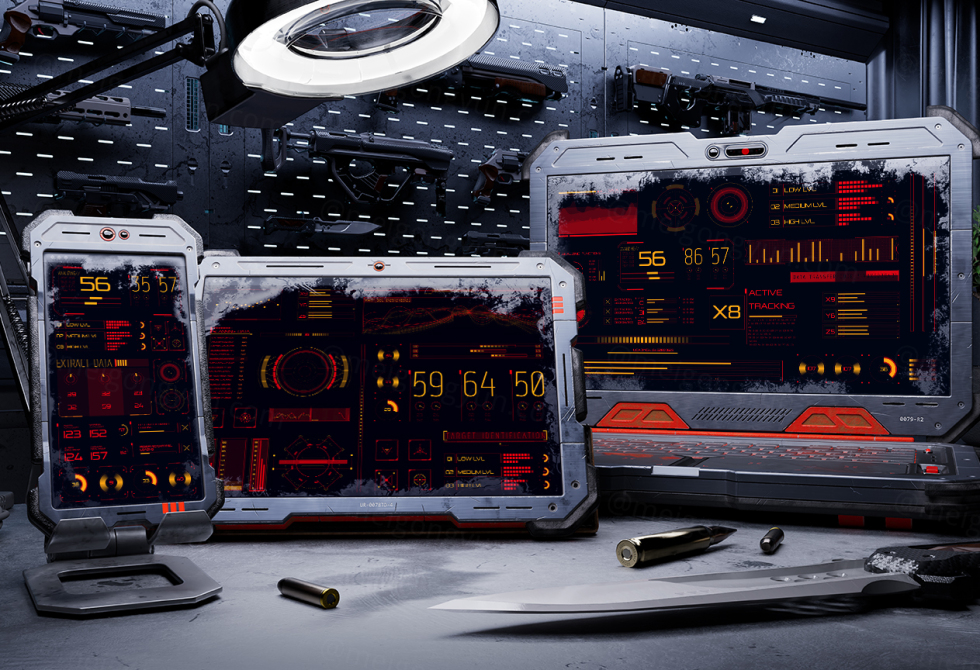 未来派赛博朋克末日科幻场景UI界面设计网页APP展示电脑手机样机模板
