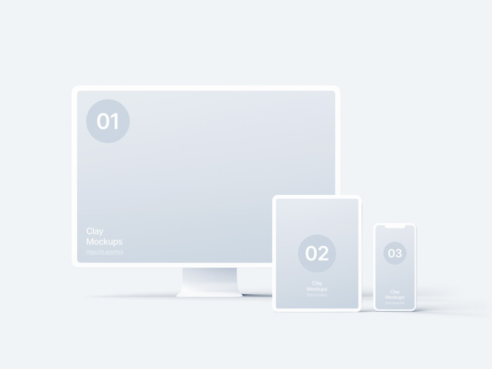 极简主义显示设备正视角网页APP设计UI贴图展示样机模板 Front Clay Mockups