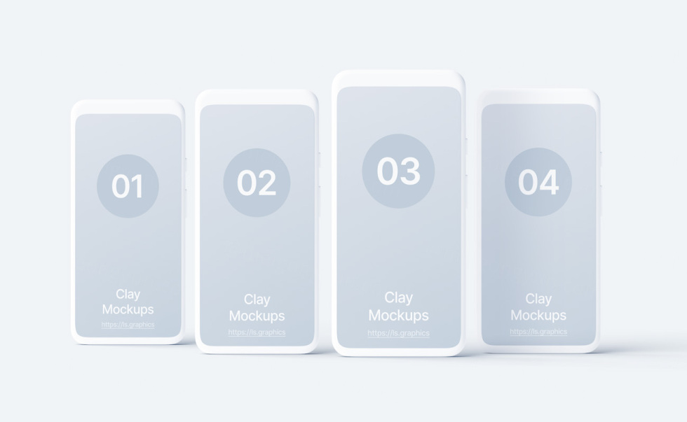 极简主义显示设备正视角网页APP设计UI贴图展示样机模板 iPhone Clay Mockups