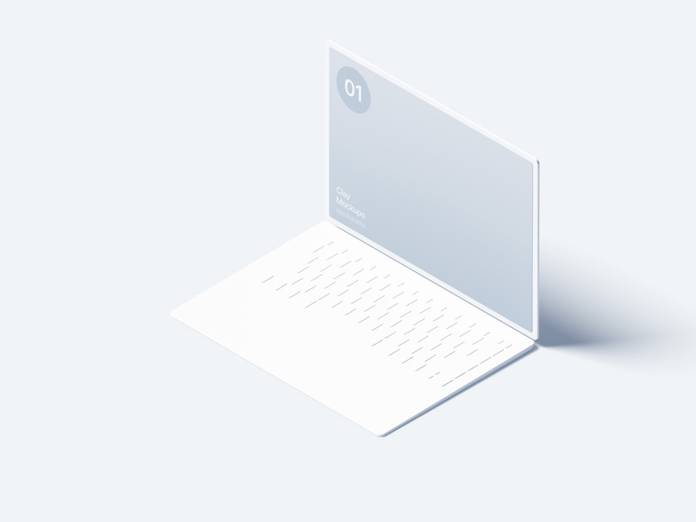 极简主义微软笔记本等距视角Web网页设计贴图展示样机模板 Surface Clay Mockup