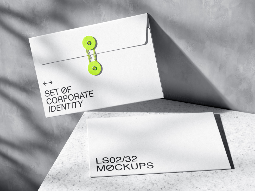 极简主义信封品牌设计提案贴图展示样机模板素材 Qubus: Brutal Stationery Mockups
