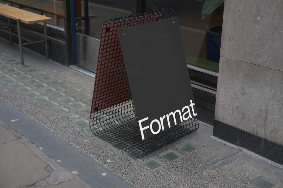 高端户外街头A字型路牌指示牌店铺广告牌设计提案贴图展示样机模板素材 A-Board Mockup