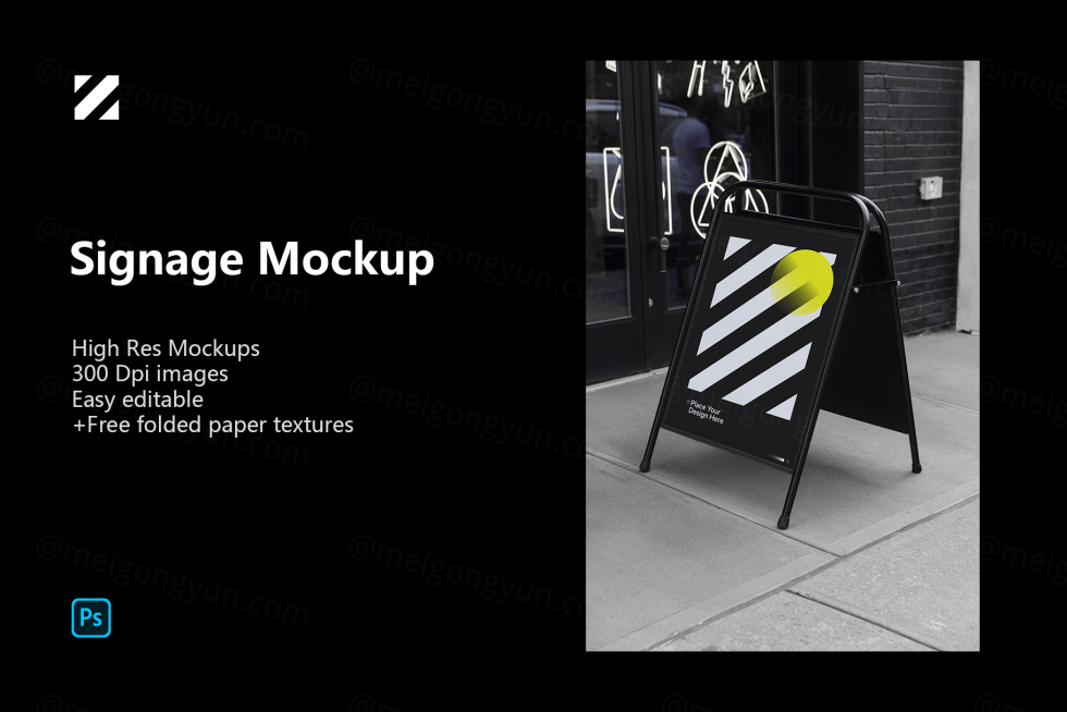 高端街道店铺A字促销广告牌品牌导视系统设计贴图展示样机模板 Signage Mockup