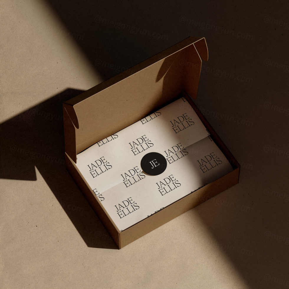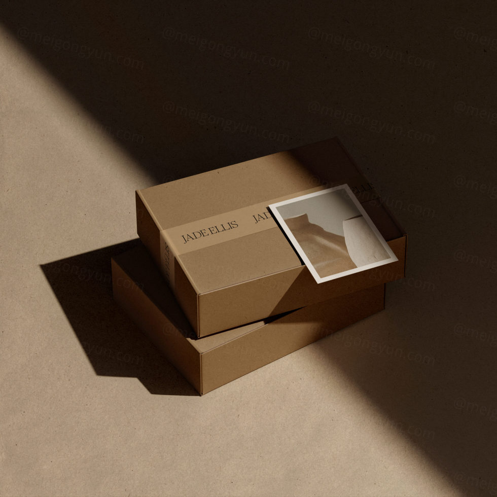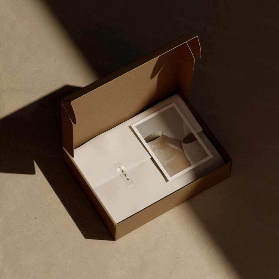 高端品牌精致纸盒快递包装包装纸明信片设计贴图展示样机模板 MAILER 01 Box Mockups