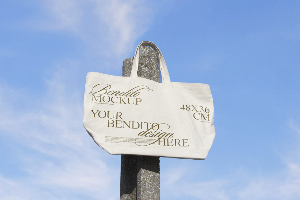 高端户外实拍无CG蓝色天空场景手提袋布袋包装设计提案贴图展示样机模板 B Totebag