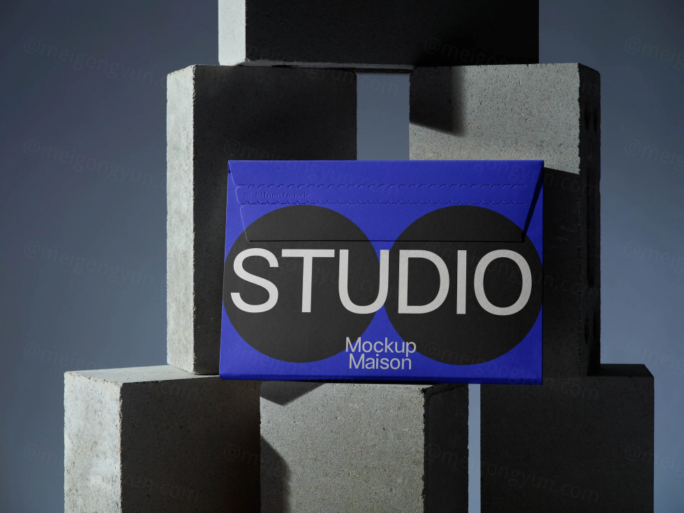 高质量工业砖块创意场景包裹文件信封品牌设计提案展示样机模板 Envelope EV-BRK-04