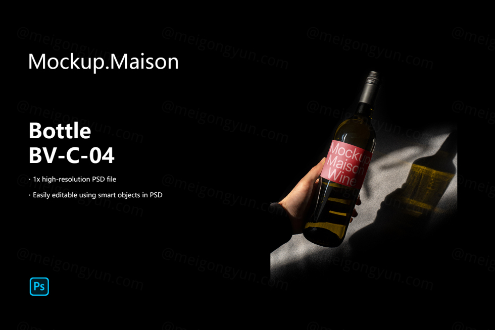该瓶子样机可作为分层 PSD 文件使用,并且易于定制。您可以通过嵌入式智能对象插入标签设计。