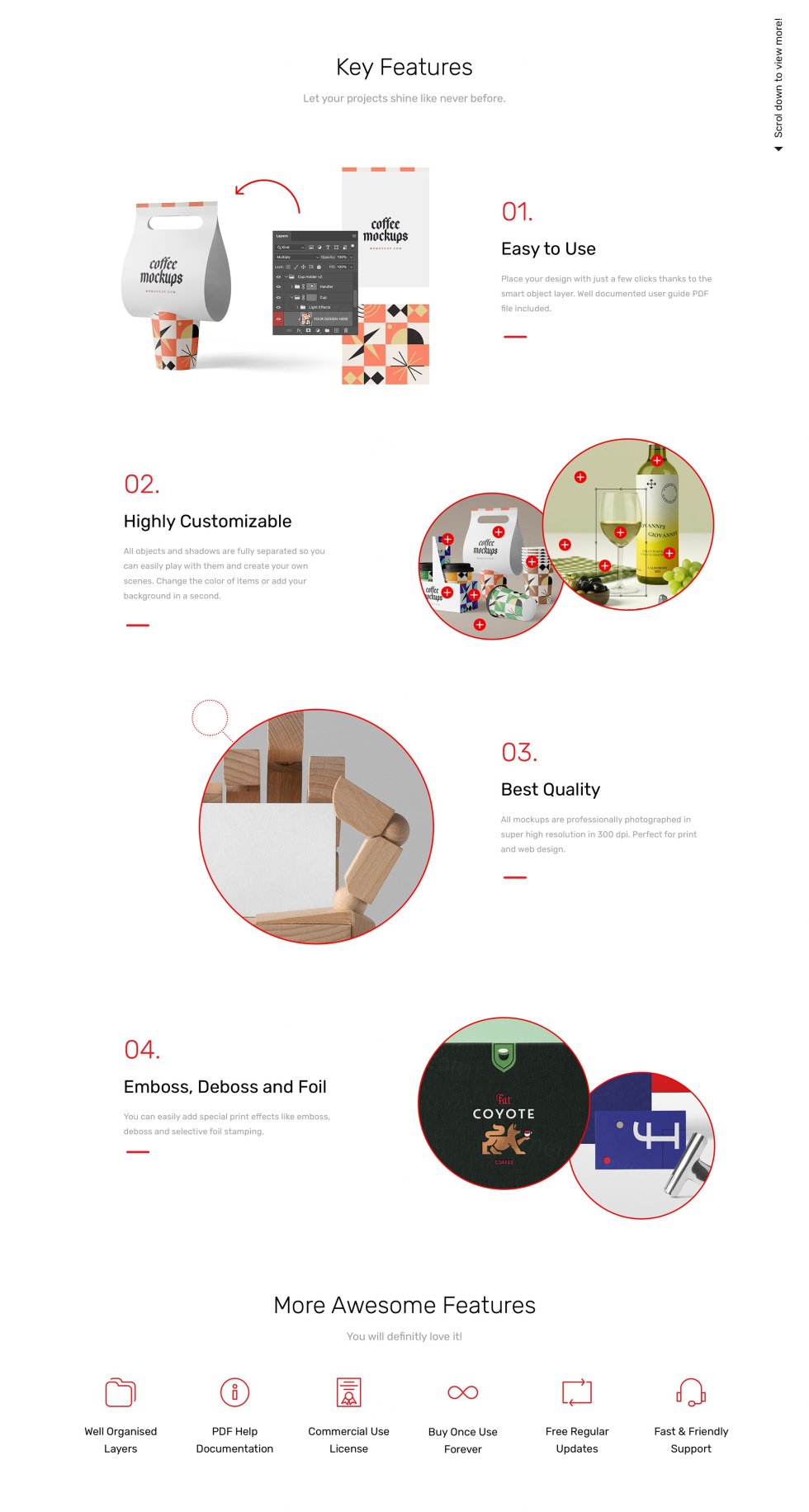 使用我们的前视图品牌模型让您的品牌项目演示更具吸引力!超高分辨率6000×4000px。300 DPI 非常适合特写和打印。通过智能对象层轻松编辑。所有文件和文件夹都组织整齐。只需将您的设计添加到智能对象层,点击保存即可完成。调整光线和阴影的不透明度以获得不同的对比度。你一定会喜欢它!