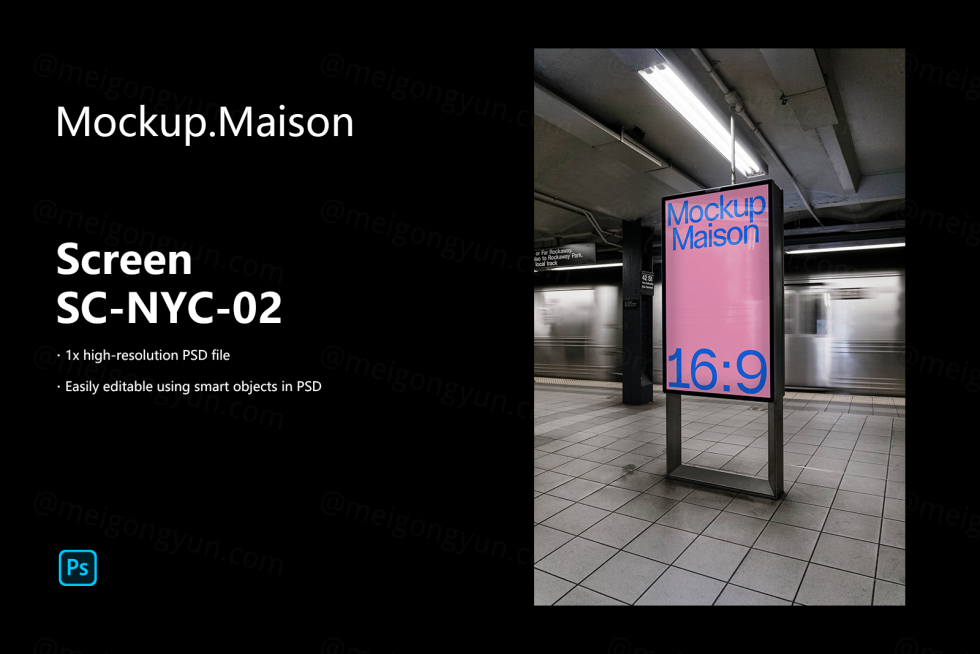 高质量纽约都市地下通道地铁灯箱广告牌海报设计贴图展示样机模板 Screen SC NYC 01
