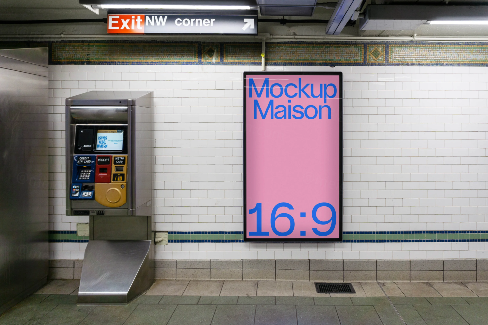 高质量纽约都市地下通道地铁灯箱广告牌海报设计贴图展示样机模板 Screen SC NYC 01