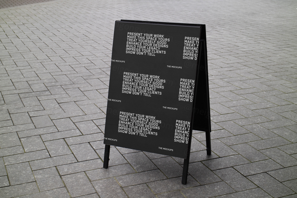 高质量城市都市街道店铺招牌A字广告牌设计贴图展示样机模板 TM-SF-SIGN-001