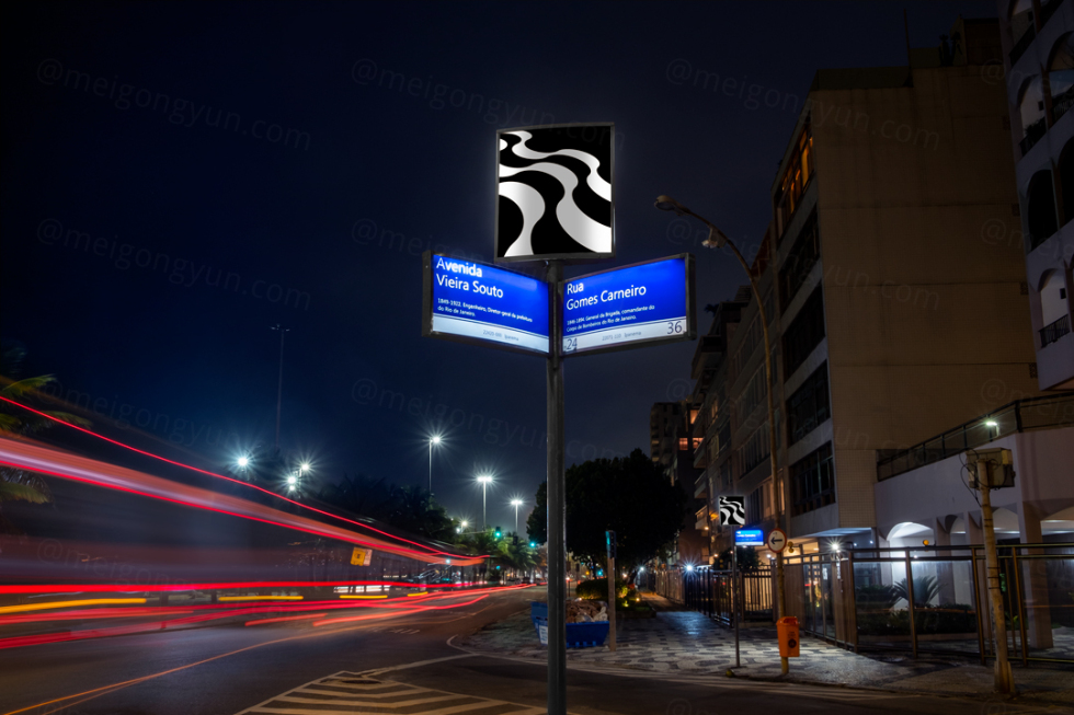 高质量城市延时摄影路边指示牌灯箱广告牌海报设计提案展示样机模板 BRA-RJ015