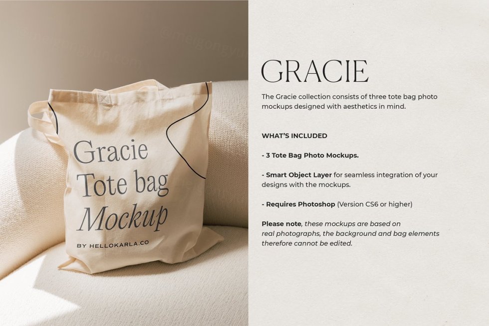Gracie 系列由三个手提袋照片模型组成,设计时考虑到了美学。