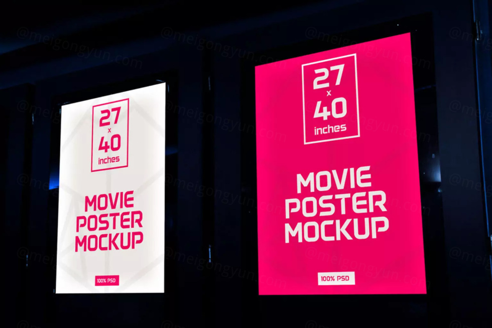 逼真地描绘了两张电影海报(每张27×40″)。尺寸3000 x 2000px,完全分层PSD。