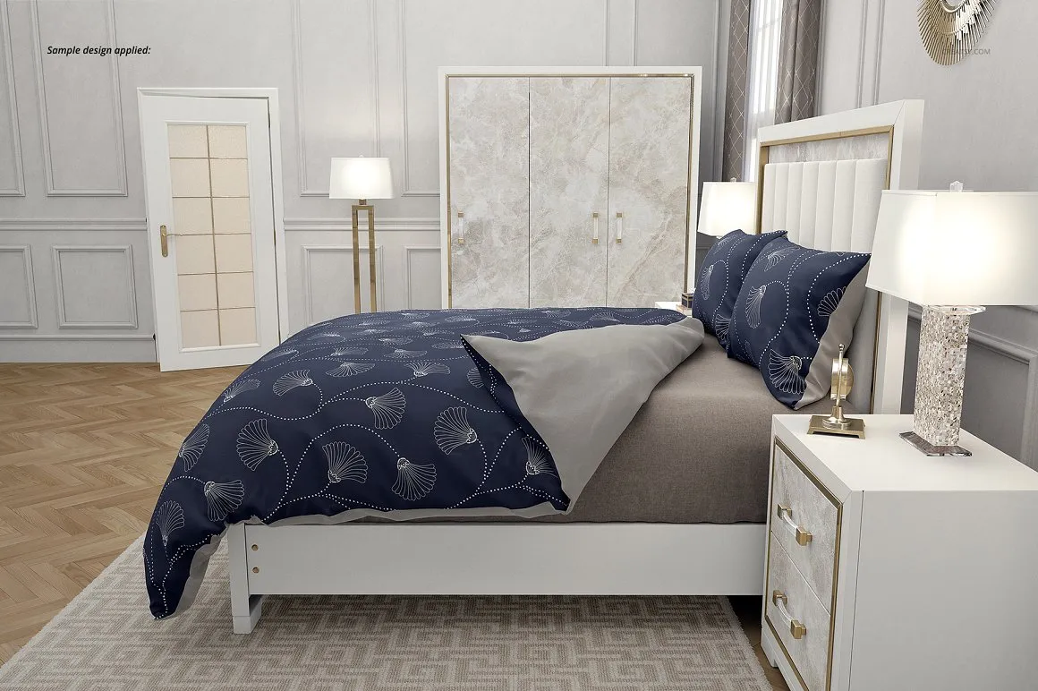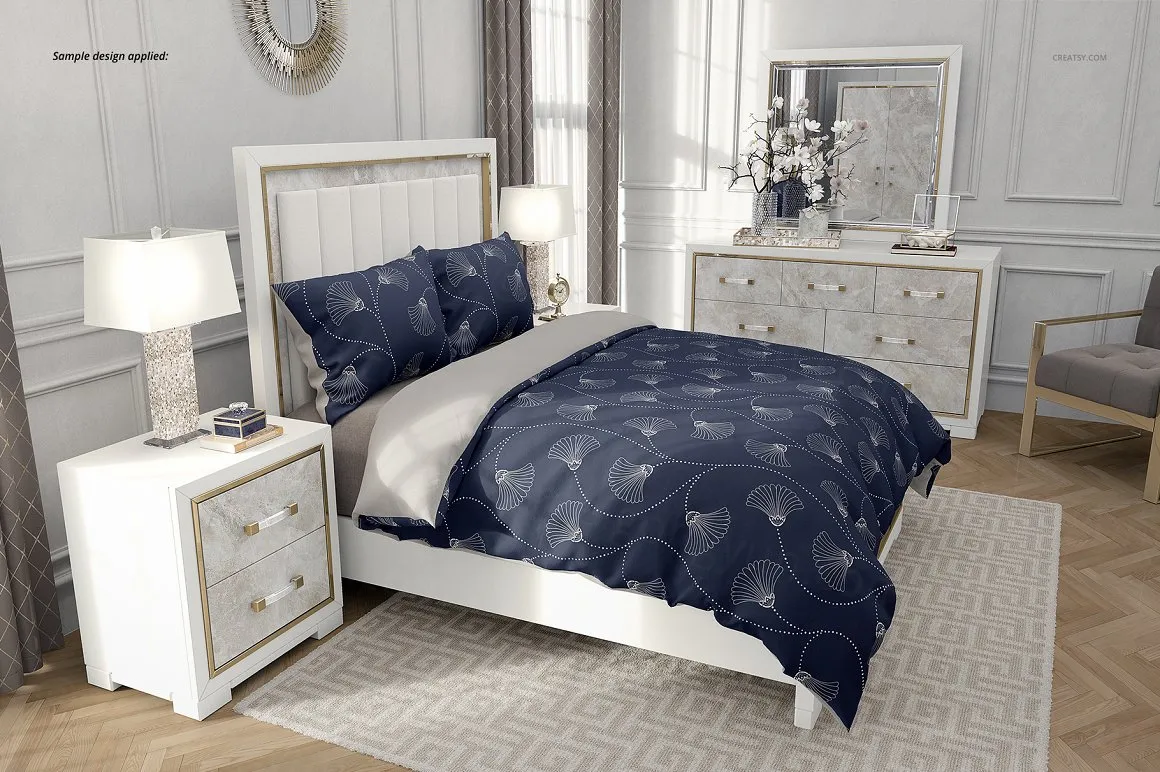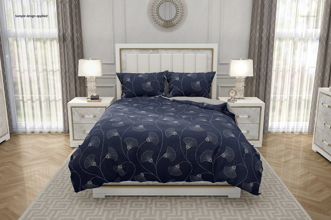 豪华卧室四件套棉被被套床上用品设计提案样机模板 Luxury Bedroom Bedding Mockup Set