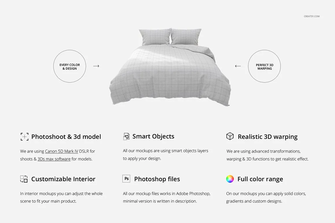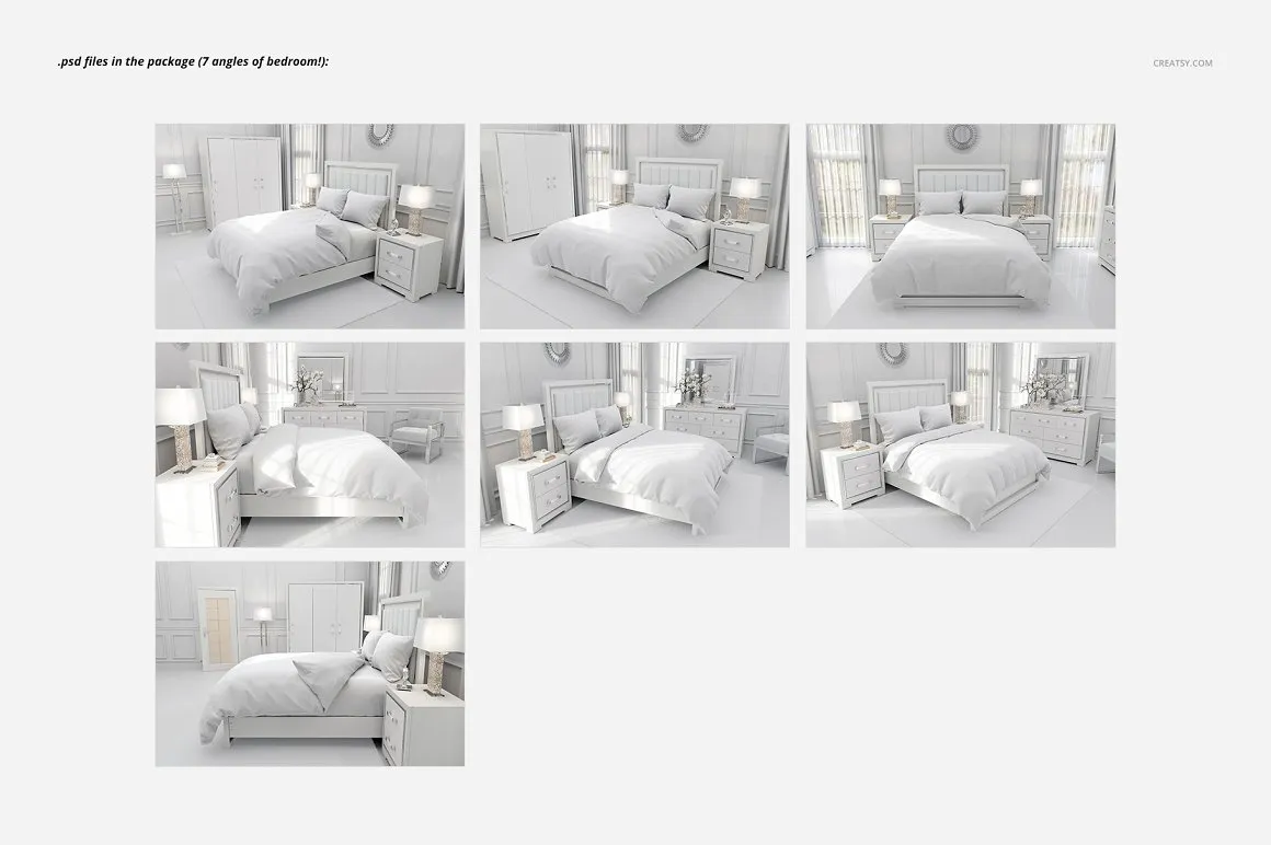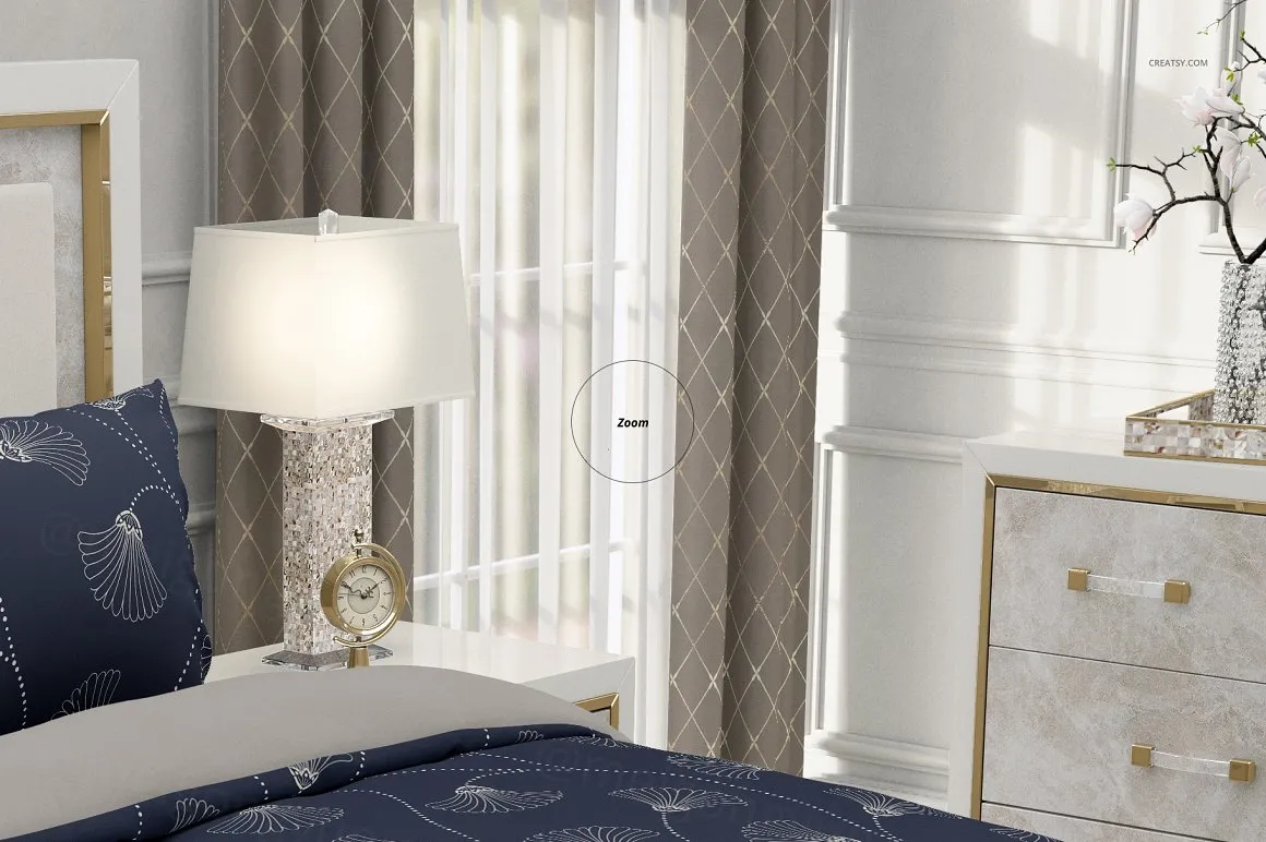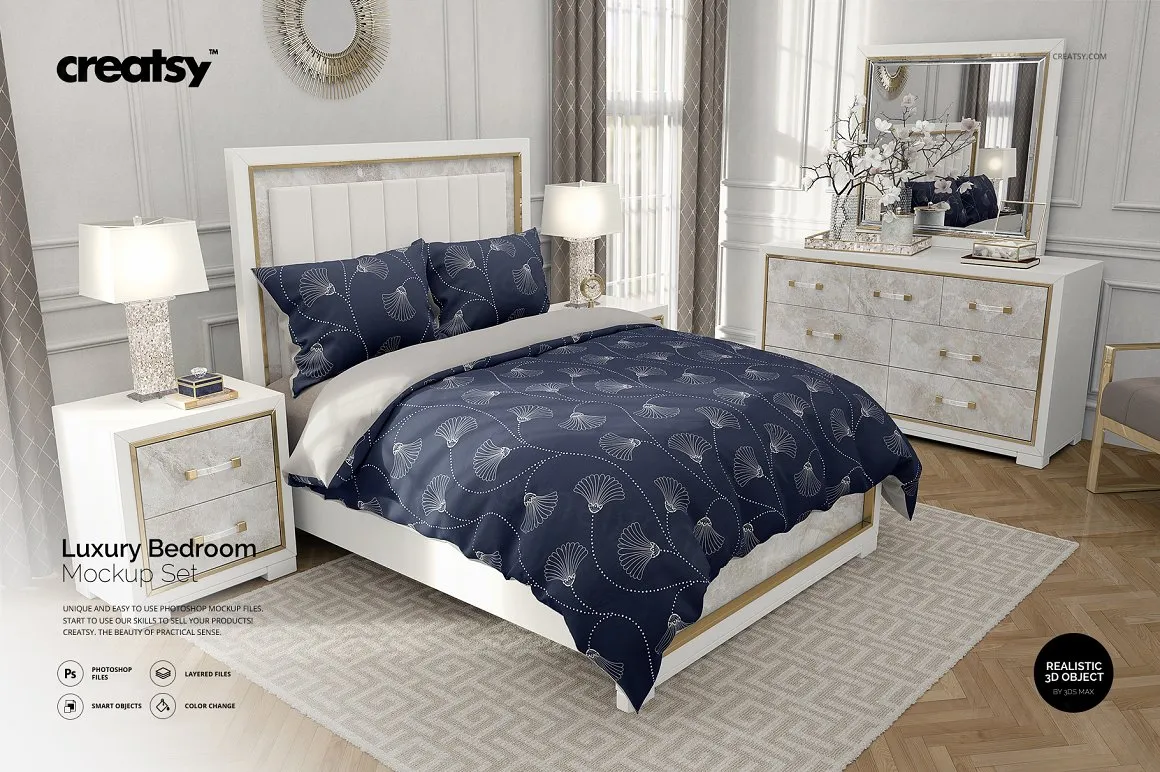 豪华卧室四件套棉被被套床上用品设计提案样机模板 Luxury Bedroom Bedding Mockup Set