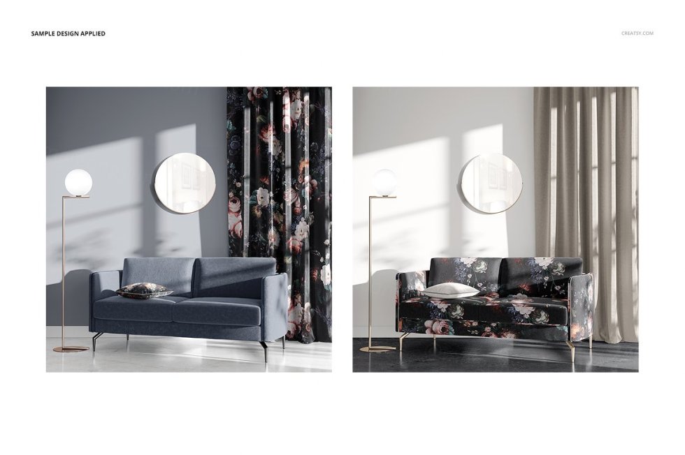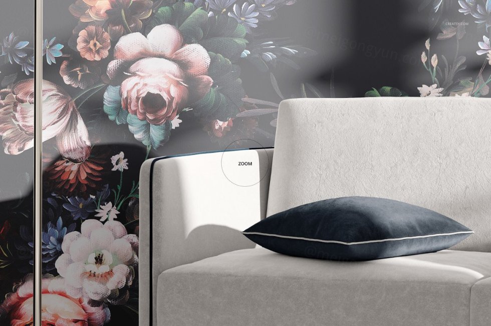颜色和设计更改:墙壁,地板,窗帘,沙发,枕头;