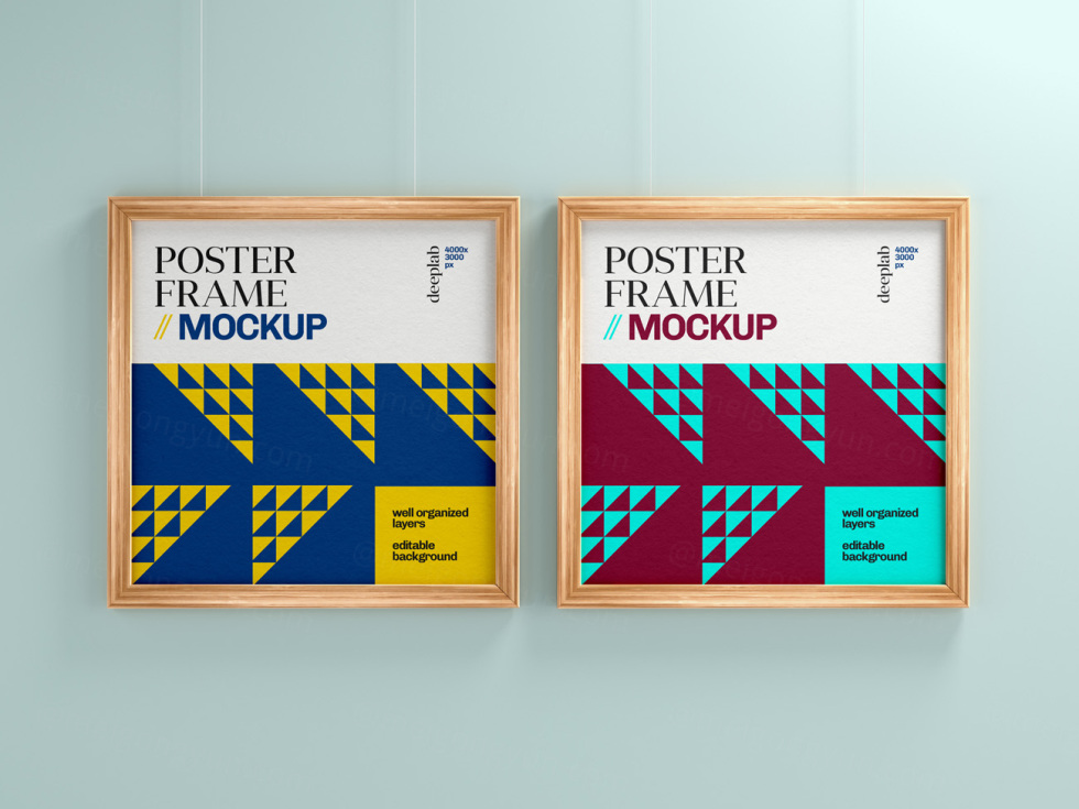 艺术木质画框相框海报设计展示贴图样机PSD模板 Poster frame mockup