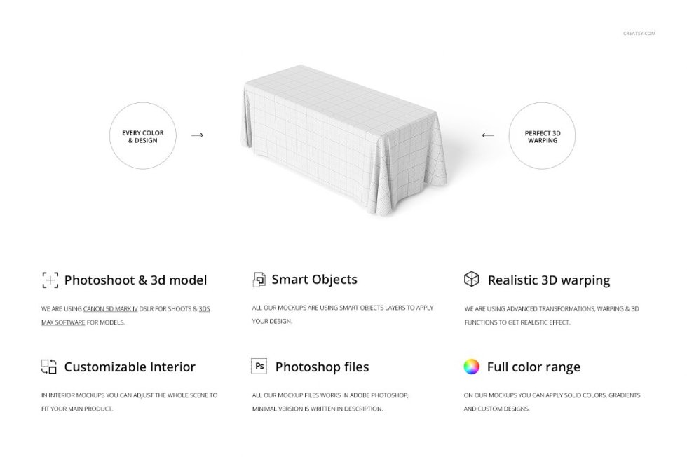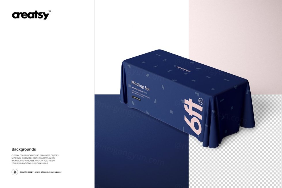 全面印花6英尺涤纶桌布样机套装