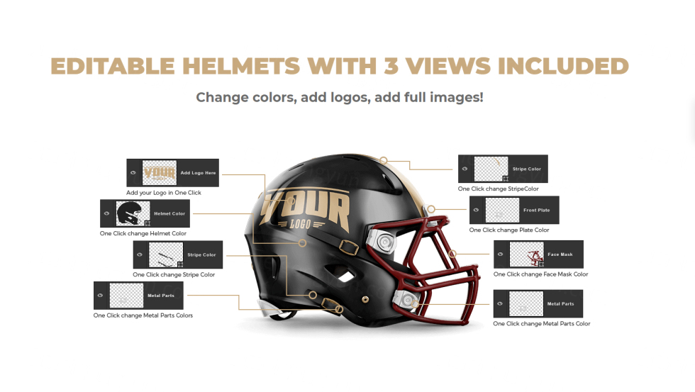 包含 3 个视图的可编辑头盔