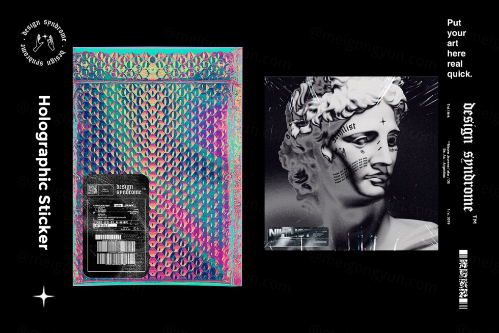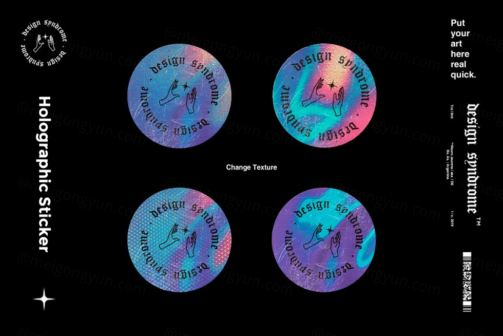 全息贴纸生成器 5000 x 5000 150 dpi 完全可编辑的全息贴纸生成器使用这个多功能模型制作您自己的惊人贴纸! 您甚至可以想出新的颜色、纹理和贴纸形式来尝试! 一定要在我的社交媒体上关注我,以了解最新的新模型和免费赠品!! @design.syndrome