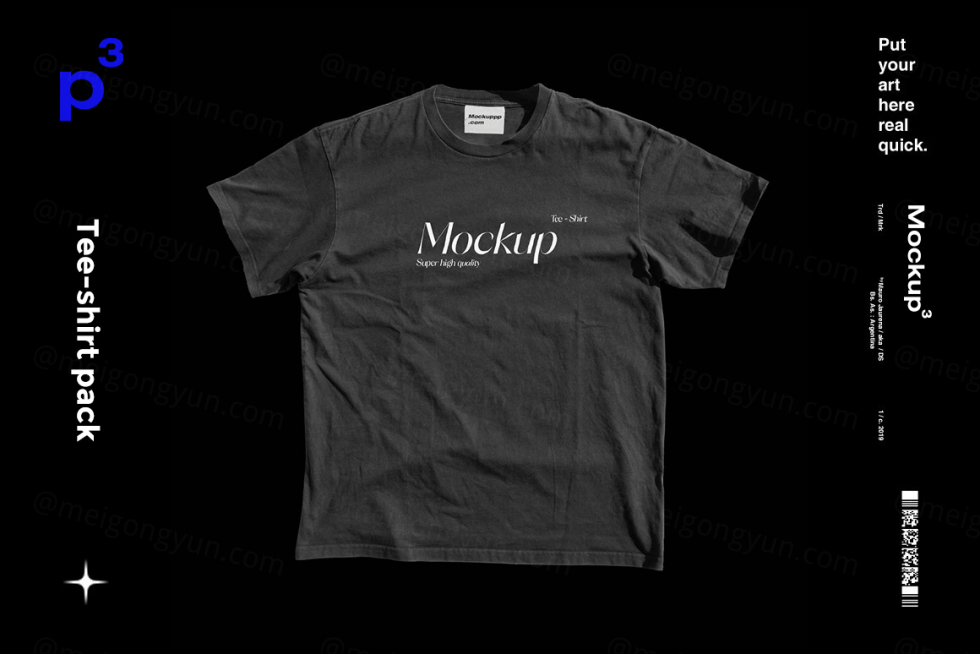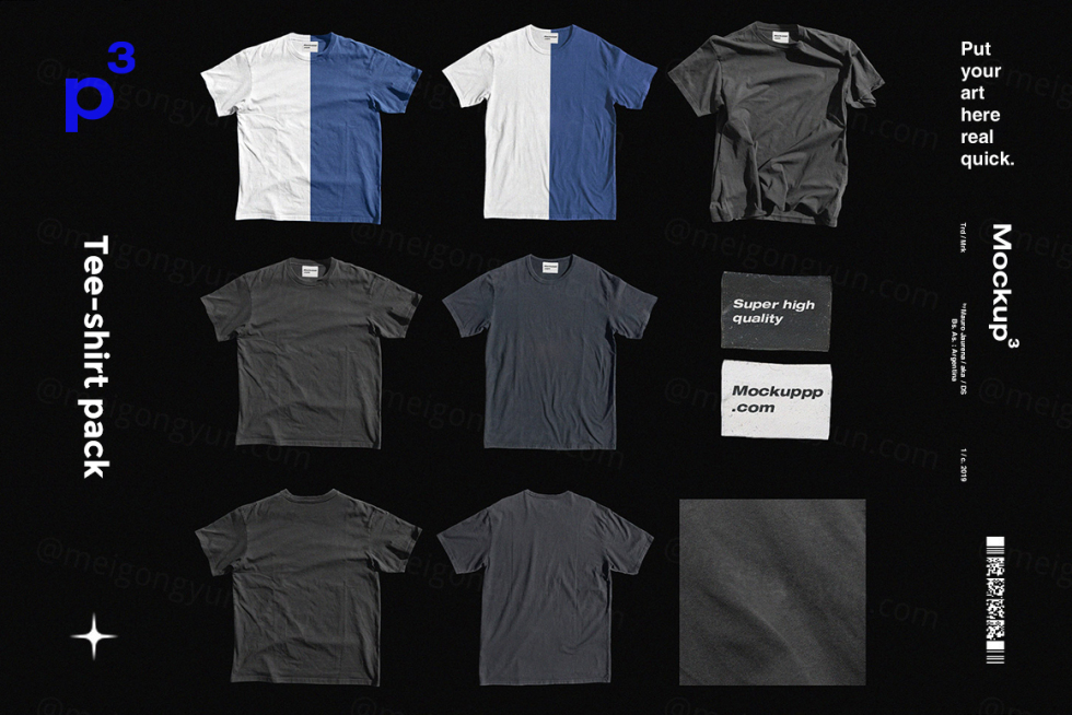 街头潮牌T恤褶皱凌乱的服饰设计展示样机模板 Mockuppp - Tee-shirt pack