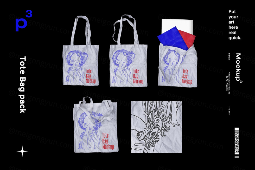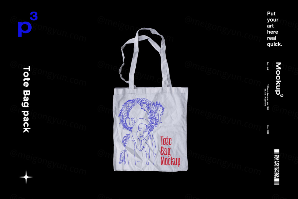 真实褶皱手提袋环保包装袋品牌设计样机模板 Mockuppp - Tote Bag pack