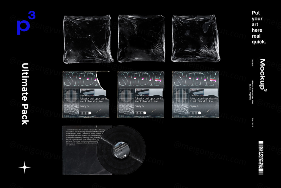 复古老物件塑料薄膜乙烯基黑胶唱片包装设计样机模板 Mockuppp - Vynil Disk Mockup