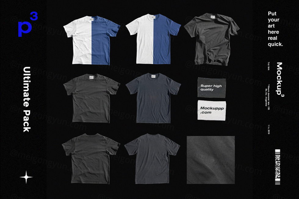街头潮牌T恤褶皱凌乱的服饰设计展示样机模板 Mockuppp - Tee-shirt pack