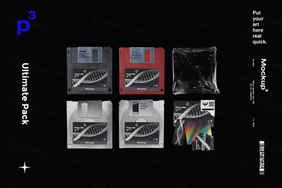 复古老物件软盘彩色贴纸保鲜塑料膜包装设计样机模板 Mockuppp - Floppy disk Mockup