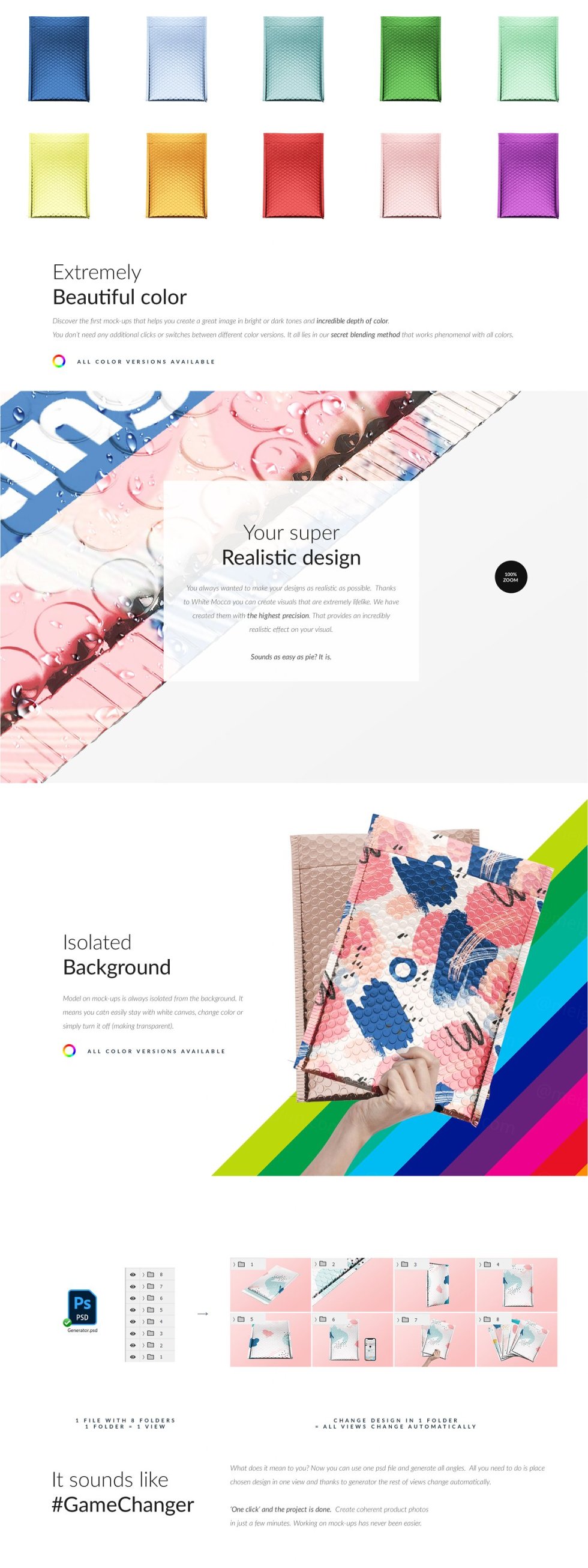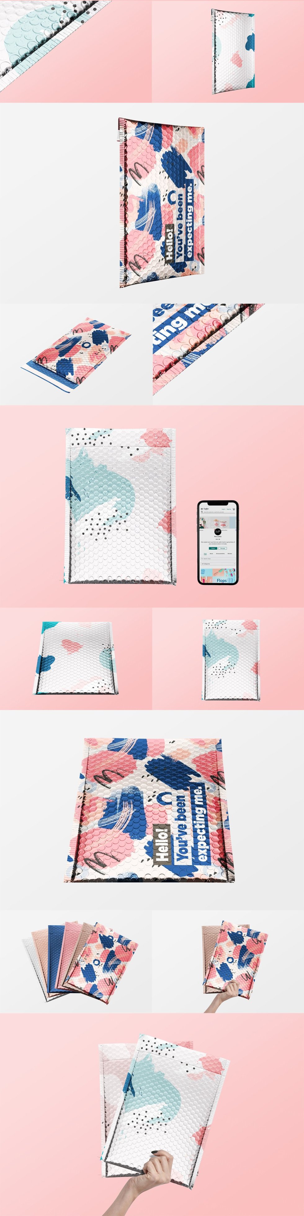 #mocca2go #whitemocca #mockupsset #generator #gamechanger 完全可编辑的 Bubble Polymailer Envelope Set Mock-up。呈现和构图的无限可能性