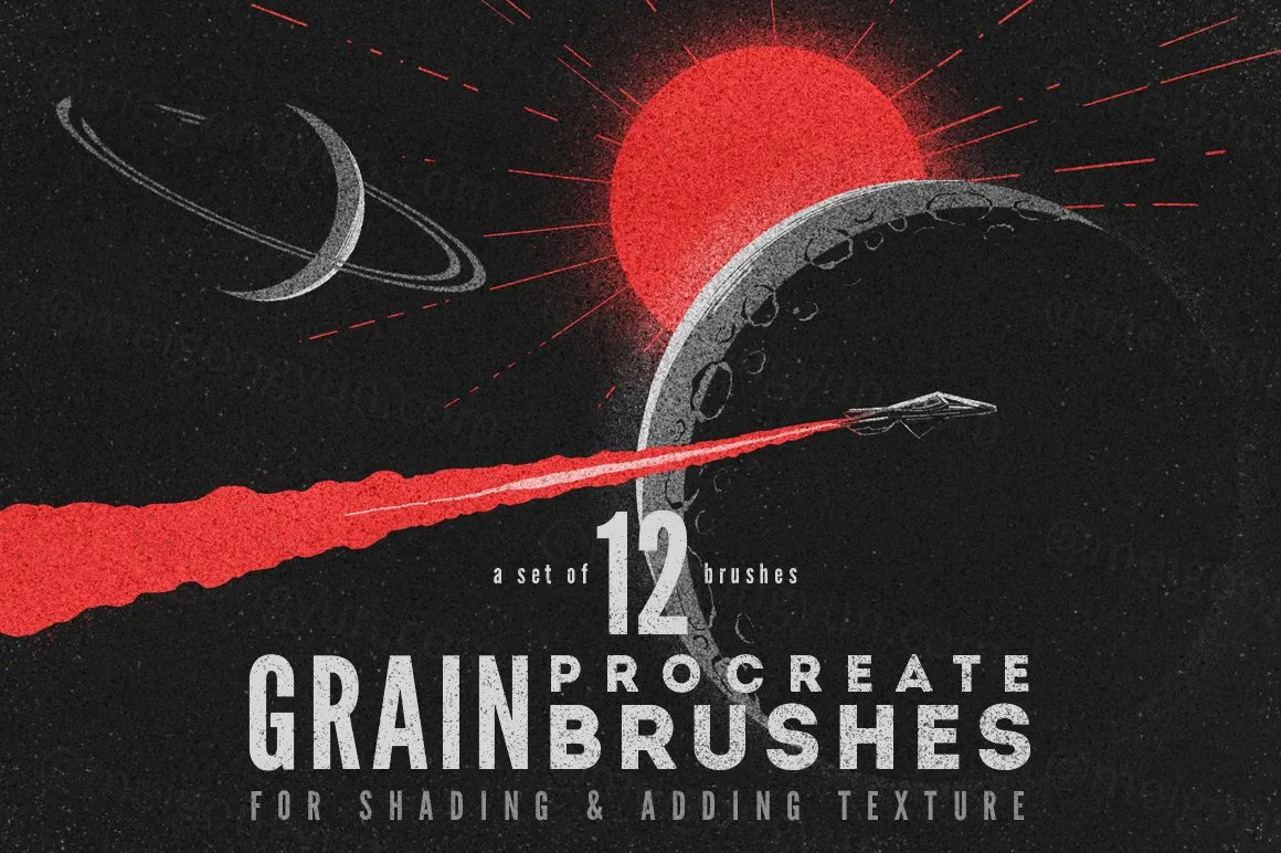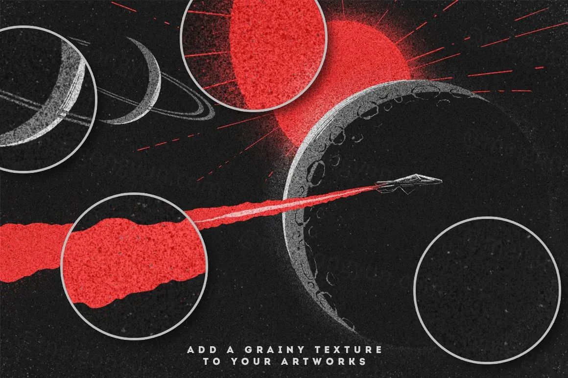 复古做旧颗粒砂砾磨砂垃圾纹理笔刷素材 Procreate grain brushes